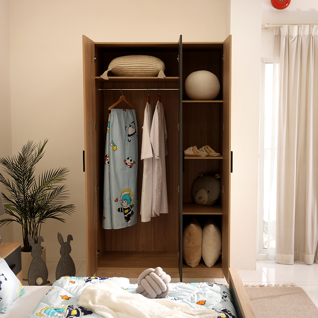 3 Door Wardrobe : 150cm W x 200cm H x 55cm D